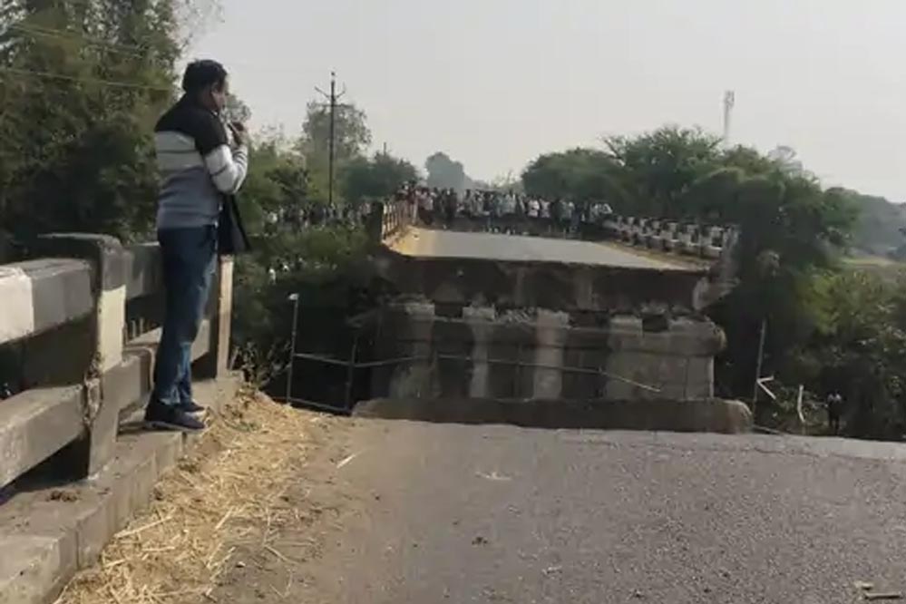 रायसेन में बरेली-पिपरिया रोड पर पुल गिरा, दो बाइक सवार चार लोग घायल
