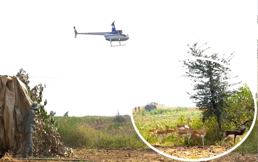 देश में पहली बार शाजापुर में अनोखी पहल, हेलीकॉप्टर से हांका कर हिरणों को पकड़ा गया