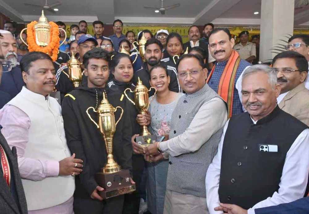 मुख्यमंत्री विष्णु देव साय ने आज राजधानी रायपुर स्थित मेडिकल कॉलेज परिसर में ऑल इंडिया फ़ॉरेस्ट स्पोर्ट्स मीट में लगातार 13वीं बार ओवरऑल चैंपियन बनने वाले छत्तीसगढ़ के विजेता खिलाड़ियों से मुलाकात की। उन्होंने सभी खिलाड़ियों को इस शानदार उपलब्धि के लिए हार्दिक बधाई एवं शुभकामनाएं दी। मुख्यमंत्री साय ने खिलाड़ियों का उत्साहवर्धन करते हुए कहा कि अपने उत्कृष्ट प्रदर्शन से उन्होंने छत्तीसगढ़ का मान पूरे देश में ऊंचा किया है और उनकी यह उपलब्धि पूरे प्रदेश के लिए गर्व का विषय है।