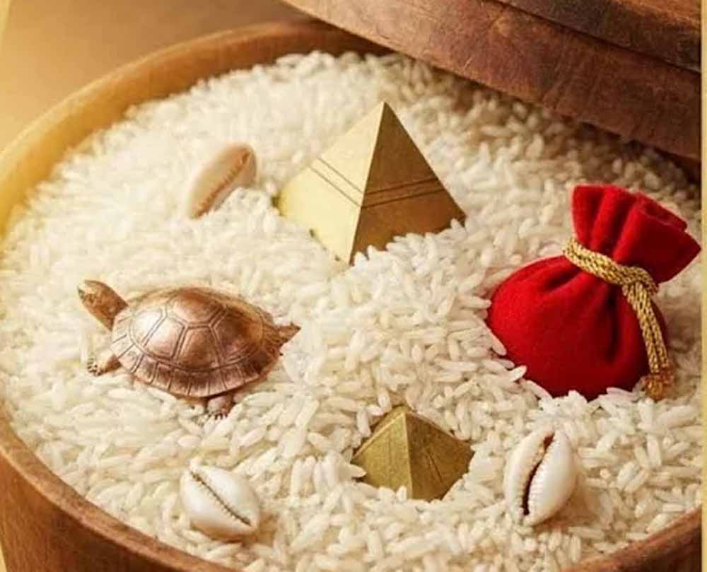 चावल का संबंध चंद्रमा और शुक्र ग्रह से है। शुक्र धन और वैभव का कारक है। चावल के डिब्बे के अंदर एक साफ चांदी का सिक्का नीचे की ओर छिपा कर रख दें। ऐसा करने से घर में शुक्र ग्रह मजबूत होता है और धन के नए स्रोत खुलते हैं। यदि चांदी का सिक्का न हो, तो आप साधारण सिक्का भी रख सकते हैं, लेकिन चांदी सर्वोत्तम है।