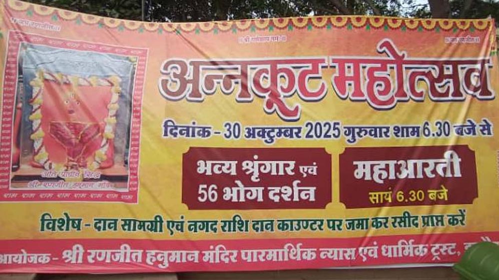 रणजीत हनुमान मंदिर से परंपरागत रूप से शहर के 101 मंदिरों में भोग भेजा जाएगा। वहीं, शाम से चलिए अन्नकूट महोत्सव की शुरुआत होगी जो देर रात तक जारी रहेगा। हालांकि, चलित भंडारा होने से यहां आने वाले भक्तों को भी परेशानी नहीं होगी।