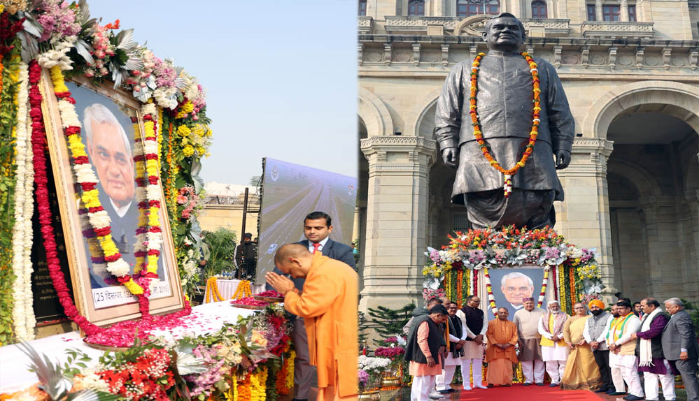 मुख्यमंत्री योगी आदित्यनाथ ने लोकभवन में पूर्व प्रधानमंत्री ‘भारत रत्न’ अटल बिहारी वाजपेयी जी की प्रतिमा पर की पुष्पांजलि