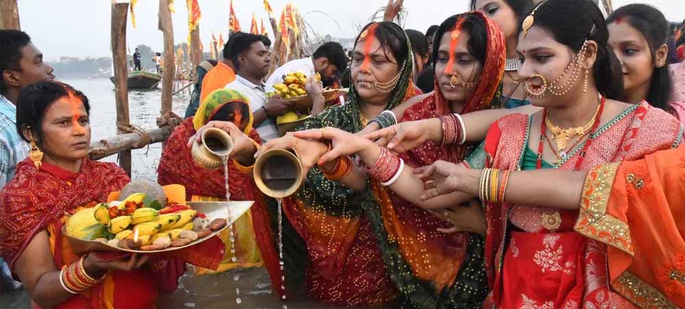 तीसरा दिन 27 अक्टूबर संध्या अर्घ्य: डूबते सूर्य को अर्घ्य देना.