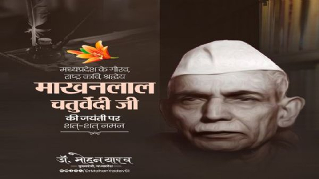 मुख्यमंत्री डॉ. मोहन यादव ने प्रदेश के गौरव और हिन्दी पत्रकारिता के पुरोधा, राष्ट्रकवि पं. माखनलाल चतुर्वेदी की जयंती पर उन्हें नमन किया है। मुख्यमंत्री डॉ. यादव ने कहा कि उनकी लेखनी ने भारतीय स्वाधीनता आंदोलन को नई ऊर्जा दी और राष्ट्रभक्ति की भावना को सशक्त किया। पुष्प की अभिलाषा, सिपाही, सागर खड़ा बेड़ियाँ तोड़े… जैसी उनकी अनेक कालजयी कृतियां भावी पीढ़ियों को त्याग एवं देशभक्ति के लिए अनुप्रेरित करती रहेंगी।