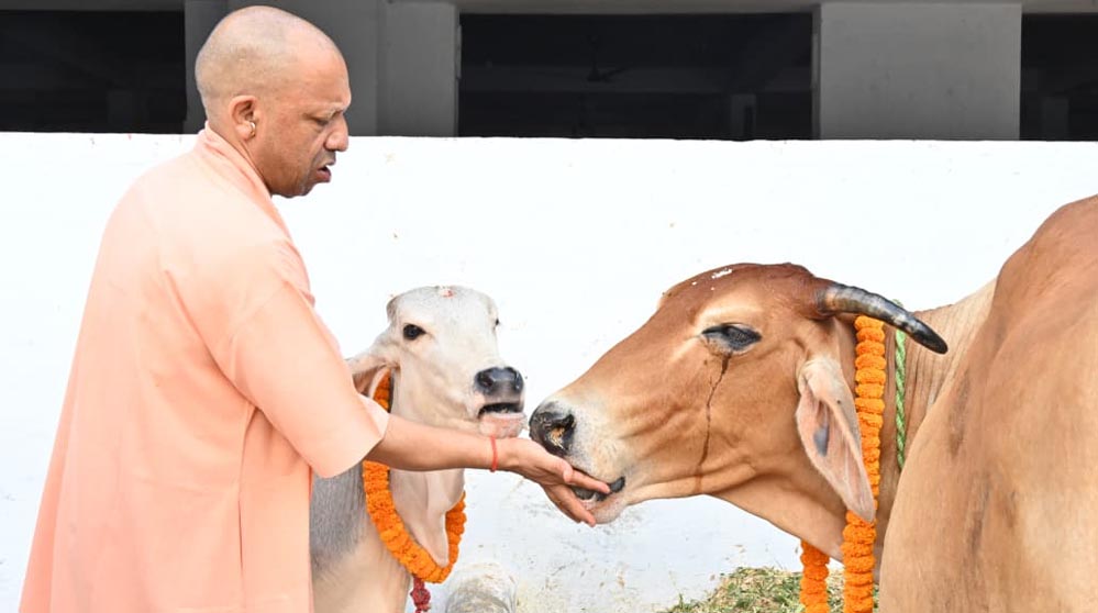गोरखनाथ मंदिर की गोशाला में मुख्यमंत्री ने की गोवर्धन पूजा
