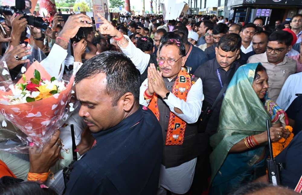 एयरपोर्ट पर हुआ भव्य स्वागत, कर्मा-पंथी नृत्यों से सराबोर रहा एयरपोर्ट परिसर