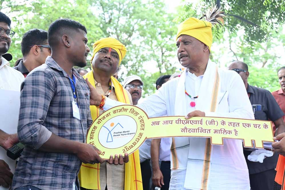 मुख्यमंत्री ने नक्सल समस्या पर दो टूक कहा कि अबूझमाड़ क्षेत्र के लोगों के सहयोग से नक्सलवाद को समाप्त करने का राष्ट्रीय संकल्प मार्च 2026 तक पूरा होगा। उन्होंने आत्मसमर्पित नक्सलियों के लिए बनी पुनर्वास नीति को देश की सर्वश्रेष्ठ नीति बताया। इस दौरान मुख्यमंत्री ने प्रधानमंत्री आवास योजना, मनरेगा, नोनी सशक्तिकरण, मिनीमाता महतारी जतन योजना के तहत हितग्राहियों को चाबियां, चेक और नकद सहायता राशि प्रदान की। उन्होंने दिव्यांग हितग्राही को व्हीलचेयर भी सौंपी।