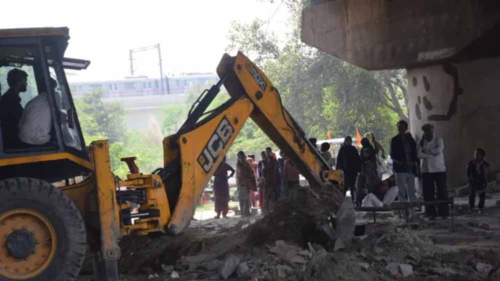 बुलडोजर से झुग्गियों को ध्वस्त किया