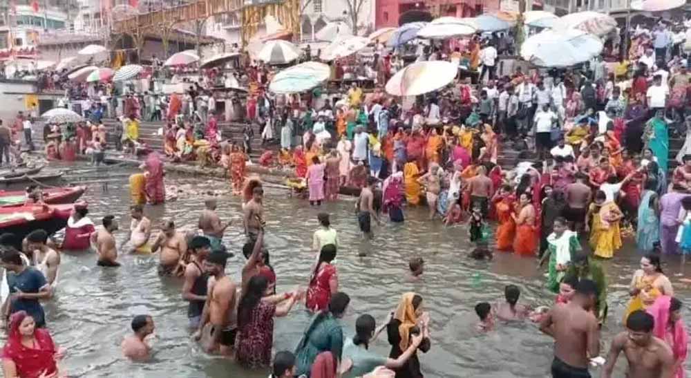 सनातन धर्म में विशेष महत्व रखने वाली देवशयनी एकादशी के पावन अवसर पर रविवार को काशी के गंगा घाटों पर श्रद्धालु उमड़ पड़े। श्रद्धालुओं ने सुबह दशाश्वमेध घाट सहित अन्य प्रमुख घाटों पर गंगा स्नान किया और भगवान विष्णु की विशेष पूजा-अर्चना की। मान्यता है कि इस दिन गंगा में डुबकी लगाने से पापों का नाश होता है और पुण्य फलों में वृद्धि होती है। सुबह से ही घाटों पर स्नान और पूजन का सिलसिला शुरू हो गया। दशाश्वमेध घाट पर महिलाओं के साथ ही बच्चे और बुजुर्ग भी आस्था की डुबकी लगाते नजर आए। प्रतापगढ़ से काशी पहुंचे श्रद्धालु शिवम ने बताया, “एकादशी के दिन गंगा नदी में स्नान करने से पुण्य फलों की प्राप्ति होती है। पौराणिक मान्यता है कि कई पाप और दोष खत्म हो जाते हैं।”