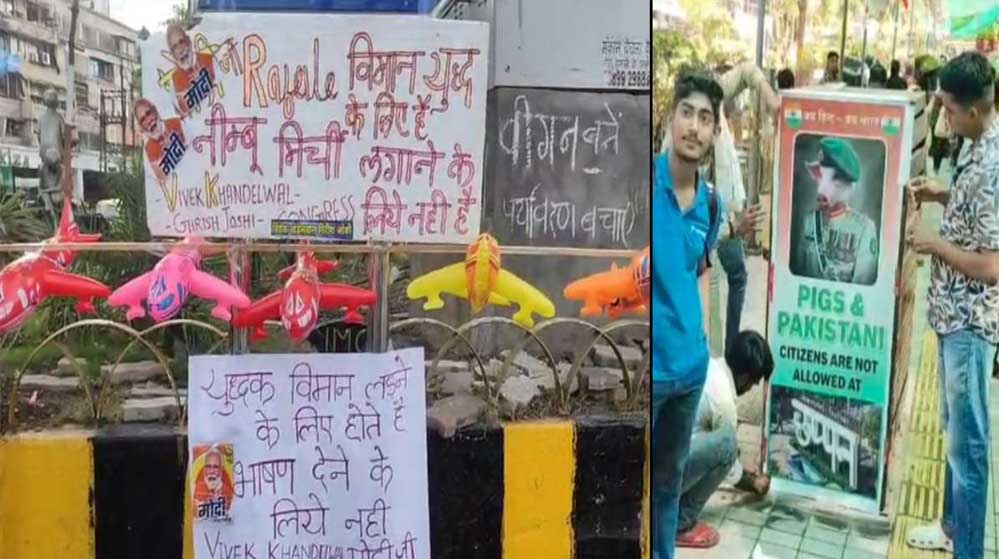 इंदौर की मशहूर फूड स्ट्रीट छप्पन दुकान पर पाकिस्तान के आर्मी चीफ असीम मुनीर की एक नकली तस्वीर छपी है, जिस पर सुअर का चेहरा है। यह पोस्टर लोगों का ध्यान अपनी ओर खींच रहा है और लोग सेल्फी लेने के लिए उमड़ रहे हैं।
