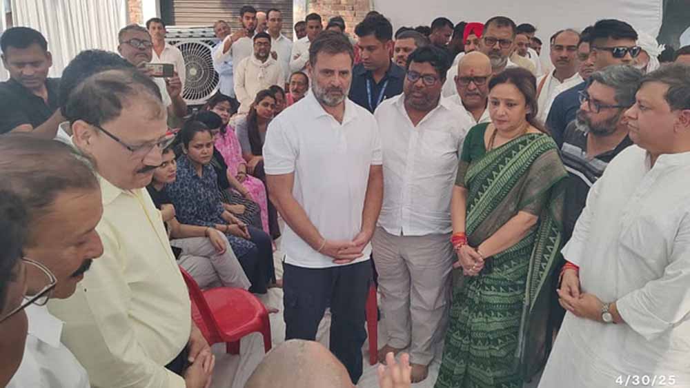 लोकसभा में नेता प्रतिपक्ष राहुल गांधी बुधवार को पहलगाम में हुए आतंकी हमले में मारे गए हाथीपुर निवासी शुभम द्विवेदी के परिजनों से मिलने उनके घर पहुंचे। वह यहां पर करीब 20 मिनट रहे। शुभम के पिता संजय द्विवेदी और पत्नी ऐशान्या ने उनसे शुभम को शहीद का दर्जा दिलाए जाने की मांग की।