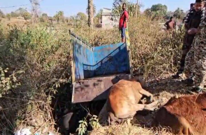 छत्तीसगढ़ से झारखंड गौवंश तस्करी का खुलासा, पुलिस पीछा में पलटी पिकअप, 3 गायों की मौत