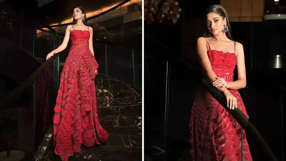 लंबी-सी स्टाइलिश ड्रेस पहन नंदिनी डीवा लग रही हैं। अटायर का रेड कलर और स्ट्रैपी स्लीव्स स्टाइल ट्रेंडी बना रहा है। वहीं, कटआउट डिजाइन भी ग्लैमरस नजर आया। ड्रेस का अपर पार्ट फिटिंग वाला है, जबकि नीचे से फ्लेयर्ड नजर आ रही है। वहीं, लुक को हाइलाइट किया स्कर्ट पोर्शन पर बनी कटआउट डिजाइन वाली लेयर्स ने। साथ में हसीना के स्टाइलिश इयररिंग्स भी ग्रेसफुल नजर आए।