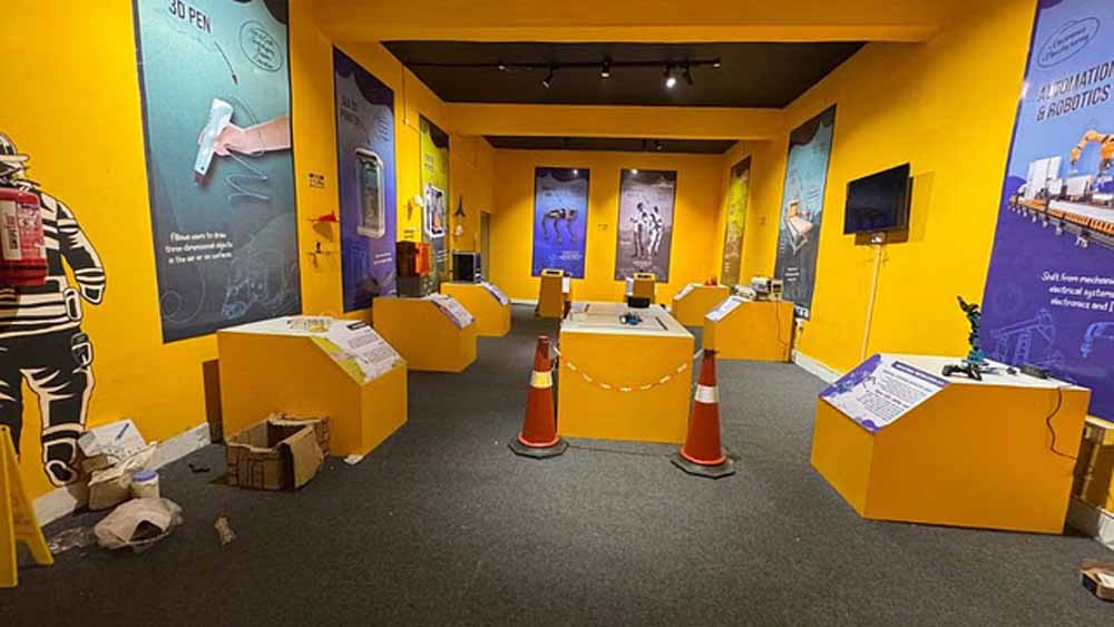 1. इंडस्ट्री रूम – यहां बच्चे औद्योगिक विकास की समयरेखा के माध्यम से उद्योगों के विकास को समझ सकते हैं। इसमें एक 3D प्रिंटिंग जोन भी होगा, जहां अलग-अलग प्रकार के तीन 3D प्रिंटर होंगे। साथ ही, डॉग रोबोट, ह्यूमनॉइड रोबोट, स्पाइडर रोबोट, राइटिंग रोबोट और पाथ-गाइडेड इंडस्ट्री रोबोट्स भी प्रदर्शित किए जाएंगे।