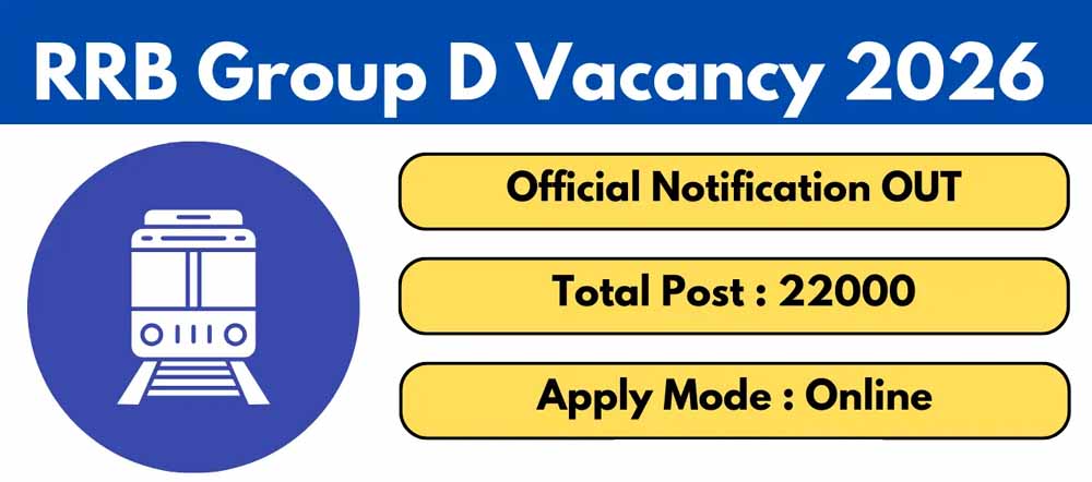 रेलवे भर्ती बोर्ड ने ग्रुप डी के 22000 पदों पर भर्ती का शॉर्ट नोटिफिकेशन जारी कर दिया है। आरआरबी ग्रुप डी भर्ती के लिए 21 जनवरी 2026 से 20 फरवरी 2026 तक आवेदन कर सकेंगे। इच्छुक व योग्य अभ्यर्थी www.rrbapply.gov.in पर जाकर आवेदन कर सकेंगे। आपको बता दें कि वर्ष 2025 की एनटीपीसी 12वीं लेवल और ग्रेजुएट लेवल की भर्ती निकल चुकी है। एएलपी और टेक्निशियन एवं आइसोलेटेड पोस्ट की भर्तियां भी निकल चुकी है। अब ग्रुप डी की भर्तियों का इंतजार था। लेकिन रेलवे की इस नई 22000 भर्ती से अभ्यर्थी निराश हैं। उनका कहना है कि रेलवे में लेवल-1 के 1.40 लाख से ज्यादा पद खाली हैं तो इतनी कम वैकेंसी क्यों निकाली जा रही है। वैकेंसी बढ़ाने के लिए अभ्यर्थी सोशल मीडिया प्लेटफॉर्म एक्स पर लगातार ट्वीट कर अभियान भी चला रहे हैं। उन्होंने वैकेंसी 1 लाख करने की मांग की है।