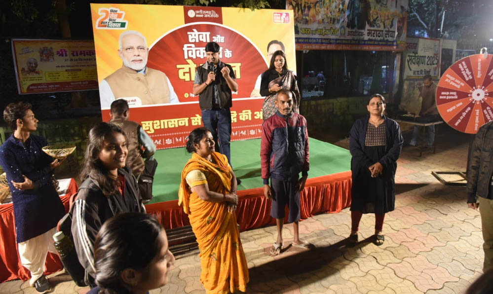 सेवा और विकास के दो वर्ष पूर्ण होने के उपलक्ष्य में जनसंपर्क विभाग द्वारा नेहरू नगर पार्क, जोन क्रमांक 1 भिलाई में एक दिवसीय विशेष कार्यक्रम का आयोजन किया गया। जिसमें बड़ी संख्या में स्थानीय नागरिकों, युवाओं एवं बच्चों ने उत्साहपूर्वक भाग लिया। कार्यक्रम में रेडियो जॉकी (आरजे) अनिमेश जैन एवं उनकी टीम ने रोचक गतिविधियों का संचालन किया, जिससे पूरे आयोजन में उत्साह और जीवंतता बनी रही।