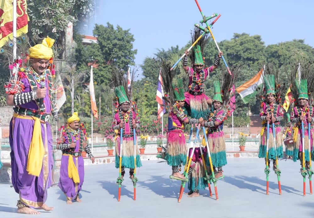 गेड़ी नृत्य दल ने अपने रोमांचक प्रदर्शन से अंतर्राष्ट्रीय दर्शकों को रोमांचित कर दिया