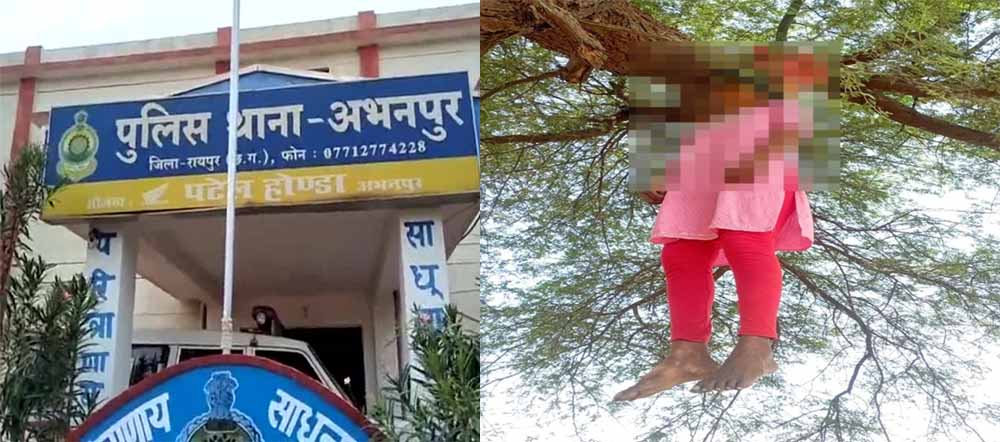राजधानी रायपुर के अभनपुर थाना क्षेत्र में एक युवती की पेड़ पर लटकती लाश मिली है। अज्ञात युवती की लाश देखकर इलाके में हडकंप मच गया है। वहीं सूचना के बाद पुलिस मौके पर पहुंची और लाश की पंचनामा कर मर्चुरी में रखवा दिया गया है। मृतिका की शिनाख्त नहीं हो पाई है। वहीं घटना की वजह भी सामने नहीं आया है। पुलिस मामले की जांच में जुट गई है।
