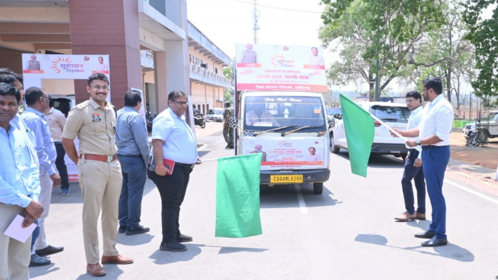 गरियाबंद जिले के प्रभारी सचिव श्री हिमशिखर गुप्ता ने जिला प्रवास के दौरान आज कलेक्टोरेट परिसर से सुशासन तिहार 2025 के जागरूकता रथ को हरी झण्डी दिखाकर रवाना किया। उन्होंने कलेक्टर श्री दीपक अग्रवाल की मौजूदगी में प्रचार रथ को रवाना करते हुए कहा कि सुशासन तिहार के दौरान यह जागरूकता रथ जिले के गांवों एवं नगरीय निकायों में जाकर लोगों को सुशासन तिहार के तहत अपनी मांग एवं समस्याओं से संबंधित आवेदन देने के लिए प्रेरित करेगा। प्रभारी सचिव श्री गुप्ता एवं कलेक्टर श्री अग्रवाल ने इस दौरान आवेदन लिखने में सहयोग करने वाले स्वयं सेवकों से भी मुलाकात की। साथ ही नागरिकगणों को आवेदन प्रस्तुत करने में आवश्यक सहयोग करने प्रेरित भी किया। उन्होंने कहा कि सुशासन तिहार के अंतर्गत पंचायतों एवं नगरीय निकाय मुख्यालय में समाधान पेटी स्थापित किया गया है। इसमें नागरिकगण अपने आवेदन को डाल सकते हैं। 11 अप्रैल तक आवेदन लेने का महाअभियान जारी है। इसके पश्चात दूसरे चरण अंतर्गत प्राप्त आवेदनों का विभागों द्वारा निराकरण किया जायेगा। प्रभारी सचिव श्री गुप्ता ने बताया कि लोगों की समस्याओं एवं मांगों के त्वरित निराकरण के उद्देश्य से राज्य शासन द्वारा विशेष अभियान चलाया जा रहा है। अभियान के तीसरे चरण में कलस्टर स्तर पर समाधान शिविरों का भी आयोजन किया जायेगा। इसमें लोगों के समस्याओं का निदान कर उन्हें लाभान्वित किया जायेगा। इस दौरान पुलिस अधीक्षक श्री निखिल राखेचा, जिला पंचायत सीईओ श्री जी.आर. मरकाम, अपर कलेक्टर श्री प्रकाश राजपूत सहित विभागीय अधिकारी-कर्मचारी उपस्थित थे।