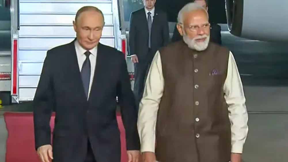 रूस के राष्ट्रपति व्लादिमीर पुतिन अपनी बहु प्रतीक्षित भारत यात्रा पर नई दिल्ली के पालम एयरपोर्ट पर देर शाम पहुंचे, जहां प्रधानमंत्री नरेंद्र मोदी ने खुद एयरपोर्ट पर पहुंचकर उनकी अगवानी की। रेड कार्पेट पर आगे बढ़कर पीएम मोदी ने गले लगाकर अपमे मित्र का स्वागत किया। इसके बाद दोनों नेता एक ही कार में बैठकर वहां से प्रधानमंत्री आवास के लिए रवाना हो गए। इससे पहले कुछ कलाकारों ने राष्ट्रपति पुतिन का गीत गाकर स्वागत किया। प्रधानमंत्री के निमंत्रण पर दो दिन की यात्रा पर पुतिन आए हैं। प्रधानमंत्री आवास पर वह पीएम मोदी के साथ डिनर करेंगे। उनकी यह यात्रा चार वर्ष के अंतराल पर हो रही है। इससे पहले वह 2021 में भारत आए थे। विदेश मंत्रालय ने बताया कि पुतिन के कार्यक्रमों में शुक्रवार को 23 वें भारत रूस वार्षिक शिखर सम्मेलन में प्रधानमंत्री मोदी के साथ वार्ता सबसे प्रमुख आयोजन है।