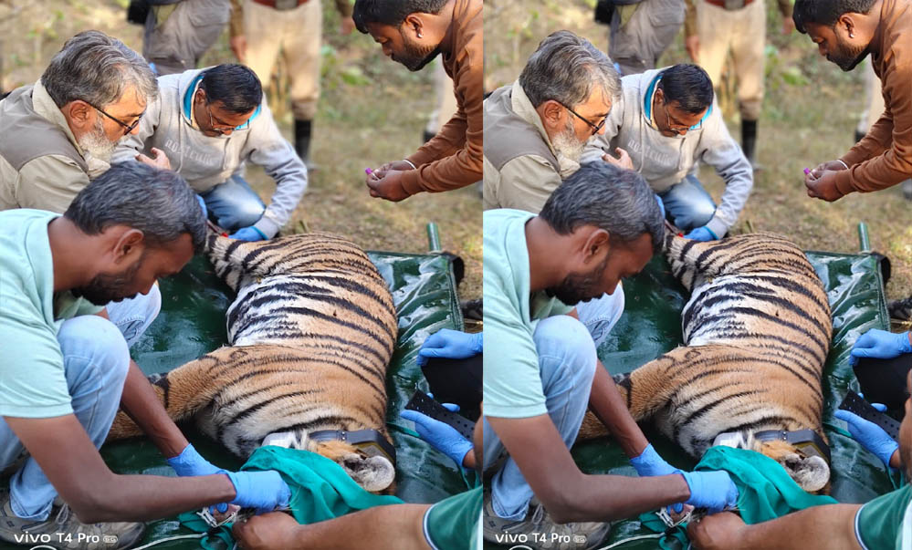 बाघिन का निश्चेतन डॉ. अखिलेश मिश्रा एवं डॉ. प्रशांत द्वारा वाइल्डलाइफ कंज़र्वेशन ट्रस्ट की टीम के साथ तथा डॉ. काजल एवं डॉ. अमोल (वेटरनरी कॉलेज, जबलपुर एवं फील्ड बायोलॉजिस्ट अनिमेष चव्हाण के सहयोग से किया गया।