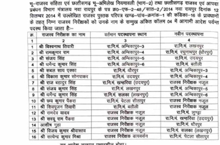 16 राजस्व निरीक्षकों का तबादला, कलेक्टर ने प्रशासनिक ढांचे में कसावट लाने किया बदलाव
