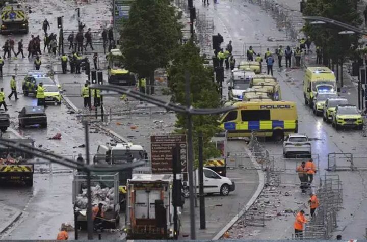 लंदन ब्रिटेन के लिवरपूल शहर में फुटबॉल प्रीमियर लीग की खिताबी जीत का जश्न मना रही भीड़ को कार ने...