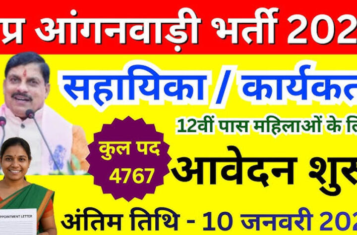 आंगनवाड़ी कार्यकर्ता व सहायिकाओं के 4,767 रिक्त पदों हेतु आवेदन आमंत्रित एमपी ऑनलाइन चयन पोर्टल से 31 दिसंबर 2025 से...
