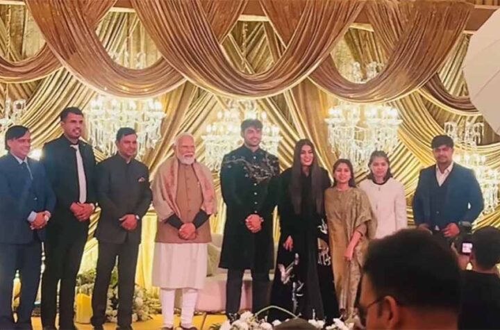 नई दिल्ली ओलंपिक गोल्ड मेडलिस्ट नीरज चोपड़ा और टेनिस खिलाड़ी हिमानी मोर की शादी की रिसेप्शन पार्टी में प्रधानमंत्री नरेंद्र...