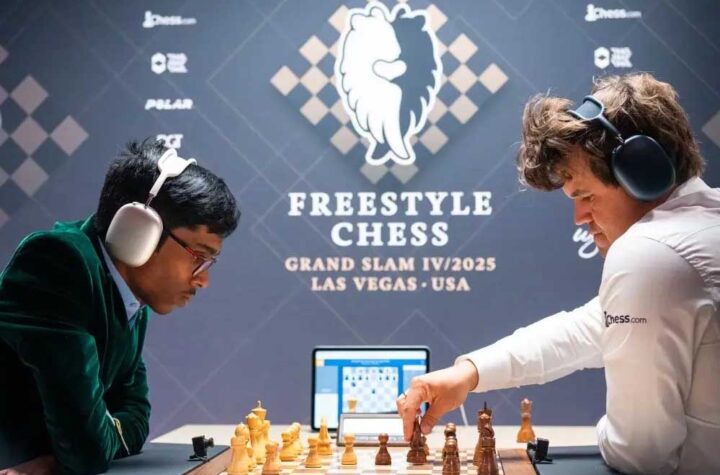 1 min read शतरंज में प्रज्ञानंद का धमाका, वर्ल्ड चैंपियन कार्लसन को दी मात July 18, 2025 Pradesh 24 लास वेगास भारत के ग्रैंडमास्टर आर प्रज्ञानंद ने लास वेगास में फ्रीस्टाइल शतरंज ग्रैंड स्लैम टूर में दुनिया के नंबर...