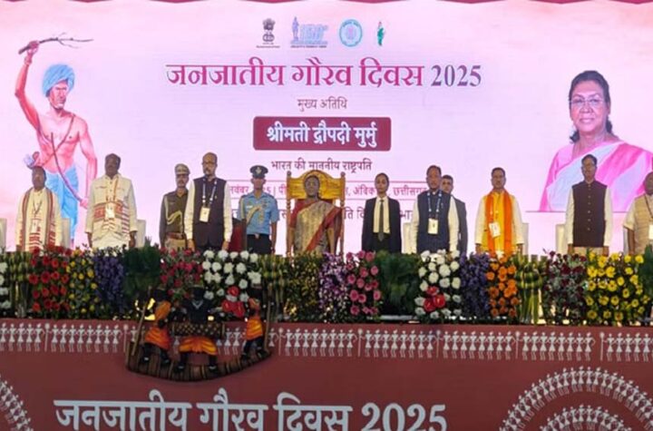 सरगुजा छत्तीसगढ़ के सरगुजा जिला के अंबिकापुर पीजी कॉलेज ग्राउंड में जनजातीय गौरव दिवस समारोह में गुरुवार को राष्ट्रपति द्रौपदी...
