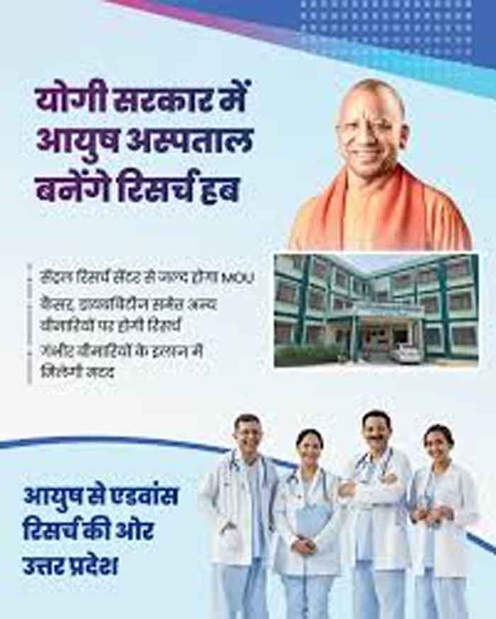 मुख्यमंत्री योगी आदित्यनाथ आयुष चिकित्सा पद्धतियों को नई ऊंचाइयों तक पहुंचाने की दिशा में एक और बड़ा कदम उठाने जा रहे हैं। प्रदेश के आयुष अस्पताल अब केवल इलाज तक सीमित नहीं रहेंगे, बल्कि उन्हें रिसर्च सेंटर हब के रूप में विकसित करने पर विचार किया जा रहा है। इसके लिए सेंट्रल रिसर्च सेंटर (केंद्रीय अनुसंधान संस्थान) के साथ एमओयू (समझौता ज्ञापन) किया जाएगा। इस पहल के तहत कैंसर, डायबिटीज, हृदय रोग समेत कई अति गंभीर और जीवनशैली से जुड़ी बीमारियों पर आयुष चिकित्सा पद्धतियों से शोध किया जाएगा।