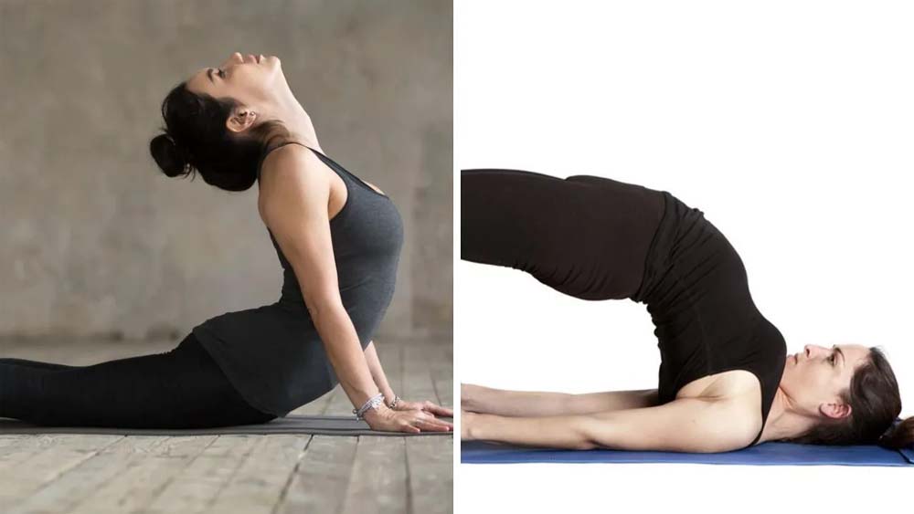 यह आसन रीढ़ की हड्डी को मजबूती देने के साथ-साथ कोर मसल्स को भी टोन करता है। पीठ के बल लेटकर घुटनों को मोड़ें और पैरों को जमीन पर टिकाएं। अब धीरे-धीरे कमर और हिप्स को ऊपर उठाएं, जबकि कंधे जमीन से लगे रहें।