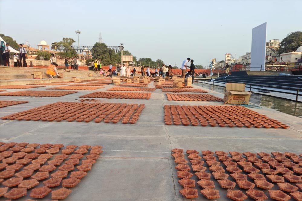 56 घाटों पर शुरू हुआ दीप सजाने का कार्य, 28 लाख दीपों की तैयारी