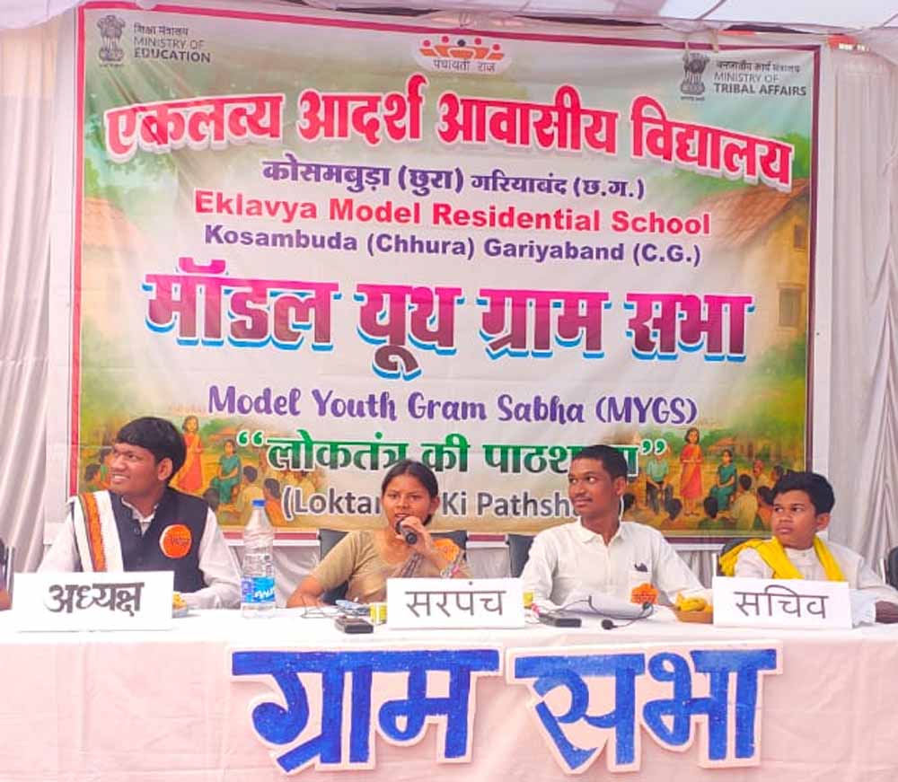 छत्तीसगढ़ के लिए बड़े गौरव के क्षण में, एकलव्य आदर्श आवासीय विद्यालय (EMRS), कोसमबुड़ा ने अपनी तरह की पहली ‘मॉडल यूथ ग्राम सभा’ (MYGS) प्रतियोगिता में राष्ट्रीय विजेता बनकर उभरने का गौरव प्राप्त किया है। पंचायती राज मंत्रालय आगामी 28 जनवरी 2026 को नई दिल्ली में आयोजित एक भव्य राष्ट्रीय पुरस्कार समारोह में छत्तीसगढ़ की इस विजेता टीम को औपचारिक रूप से सम्मानित करेगा।